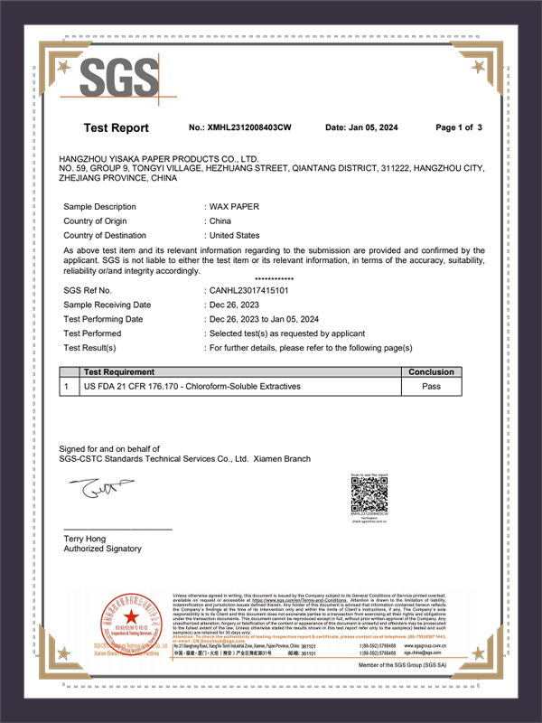 Izvještaj o testiranju voštanog papira SGS